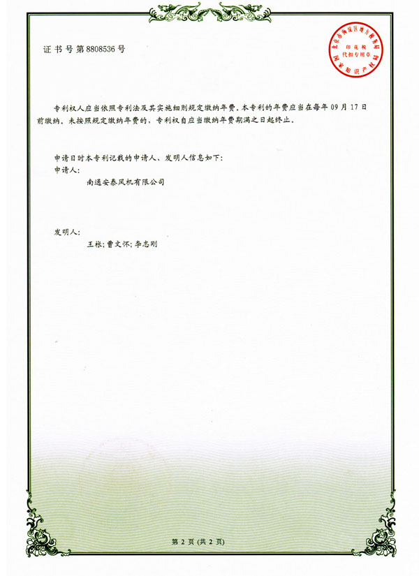 安泰風(fēng)機(jī) >> 資質(zhì)證書 >> 一種排風(fēng)機(jī)